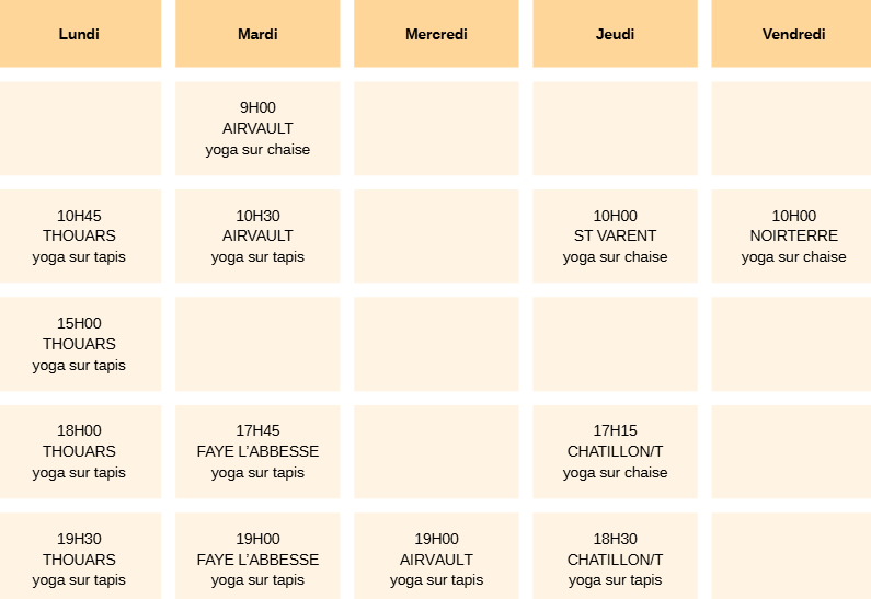 Je propose des cours collectifs à Thouars, à Airvault, à Faye-l'Abbesse, Saint-Varent, Noirterre et à Châtillon-sur-Thouet.
